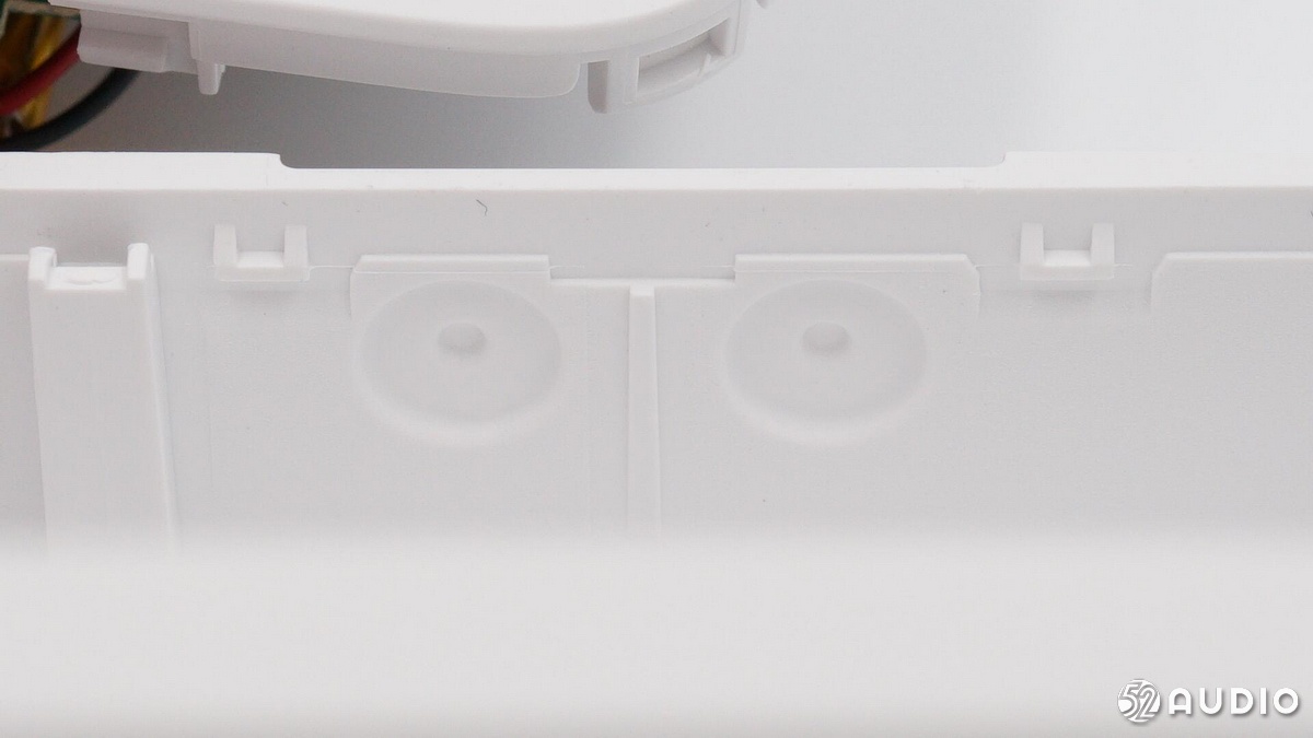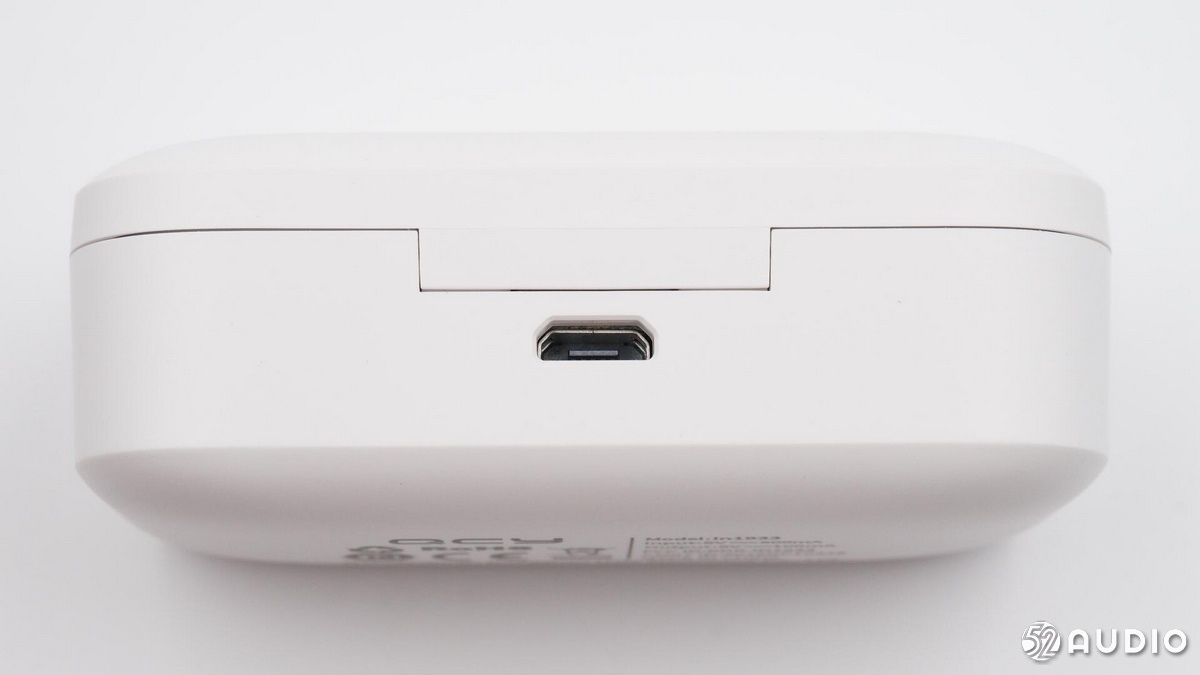 充電盒正面的指示燈開孔,隱藏式設(shè)計(jì)。旁邊是充電座艙安裝的卡槽。