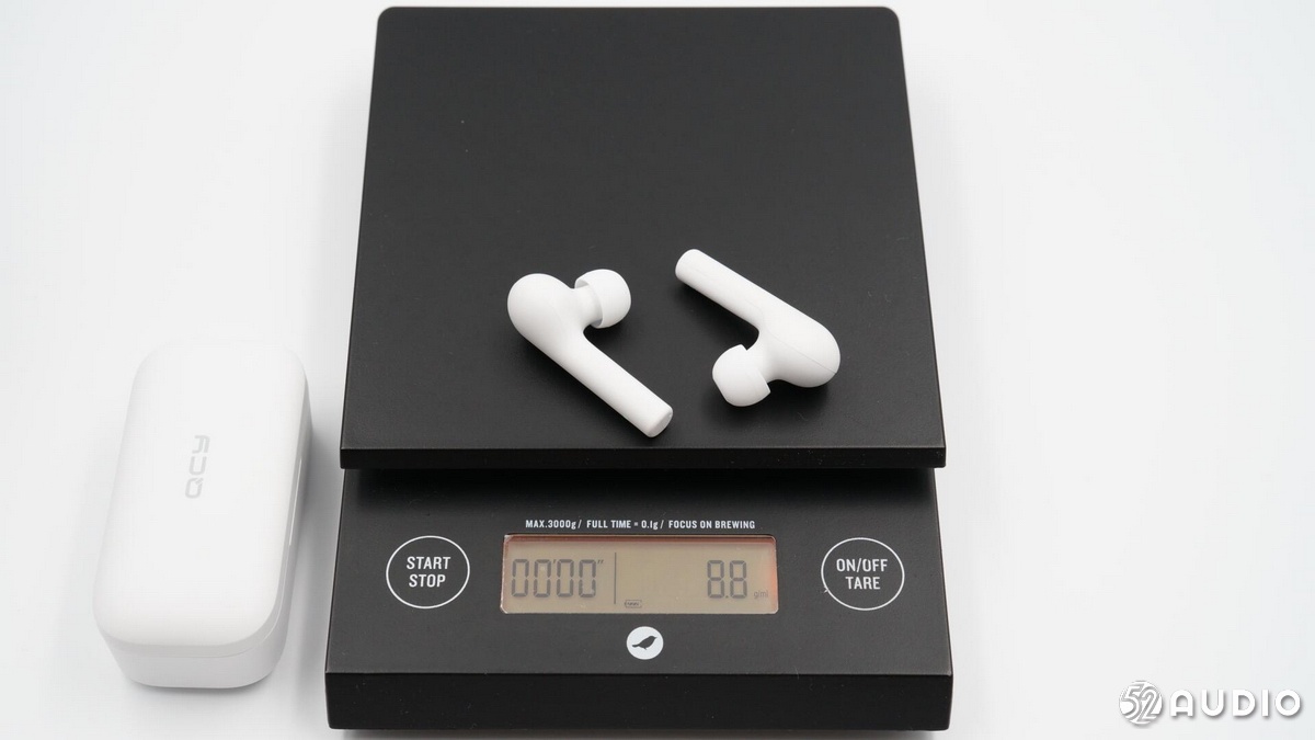 左右耳機(jī)重量:8.8g。與QCY T4相比,充電盒電池容量更大,所以重了幾克。