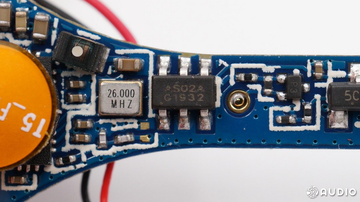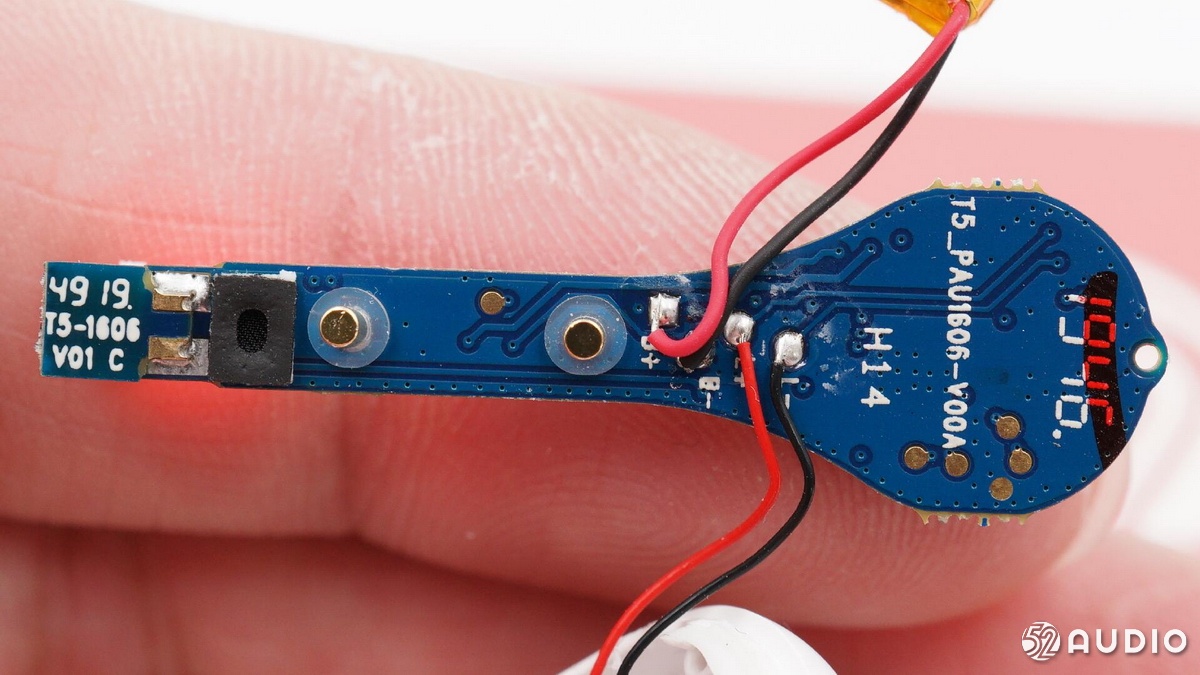 耳機(jī)內(nèi)部電路一覽,電池和揚(yáng)聲器通過導(dǎo)線連接至主板。