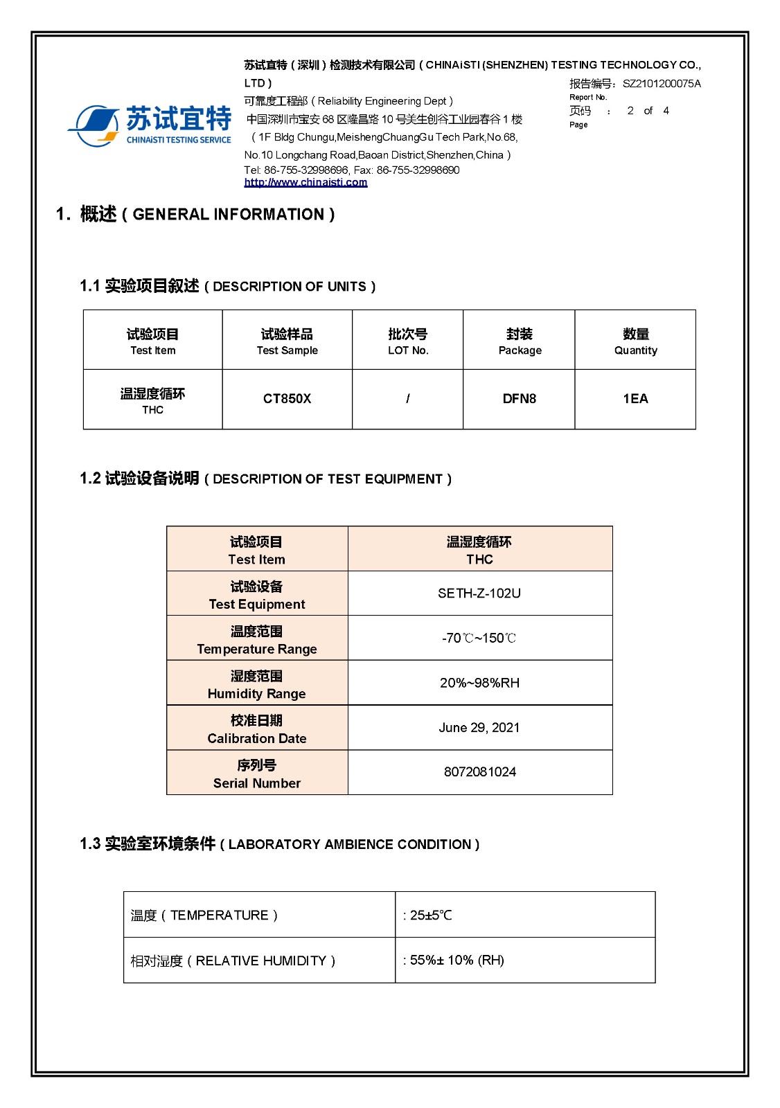 CT8333-QK DFN6_溫度循環(huán)試驗報告